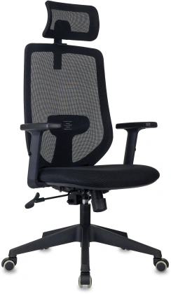 Office chair ergonomic Бюрократ MC-412N-H black mesh/fabric headrest на колесиках metal хром